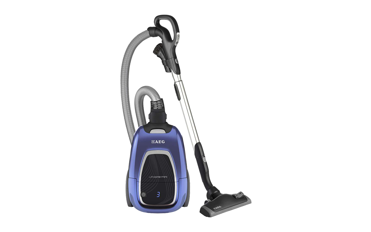 In spite of its small size, the ULTRA ONE MINI from AEG is just as powerful as a bigger vacuum cleaner. With its patented AERO Pro-System and the AERO Pro floor nozzle, the Ultra One Mini thoroughly removes dirt, dust and fibers for best cleaning results on floors of all kinds. The control panel on the ergonomically designed handle makes it easy to change power settings and regulate the cleaning power. The ULTRA ONE MINI is 38% smaller than its big brother the ULTRA ONE. The small, lightweight appliance is easy and ergonomic to use and can be stored easily in a small space. It features a specially developed anti-noise concept that makes it particularly quiet while effectively removing even deep-seated dirt.