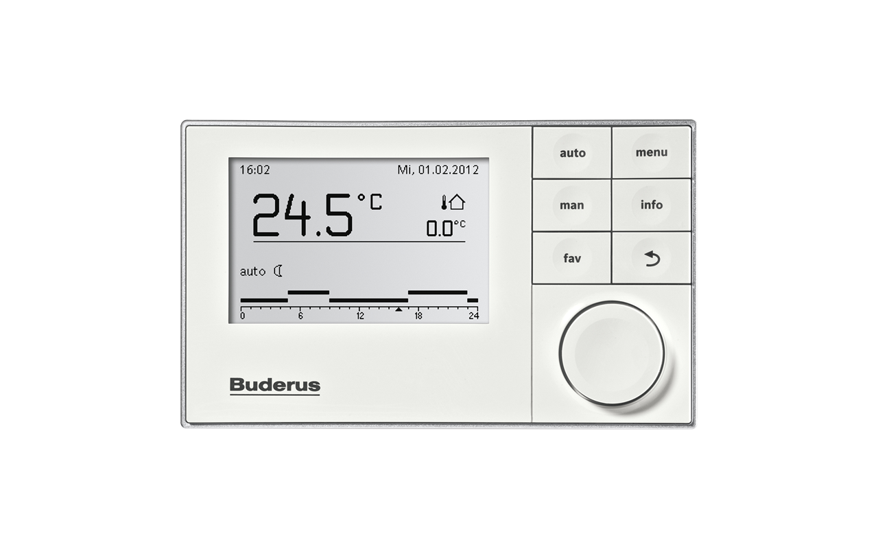 The “Logamatic EMS Plus“ control system from Buderus is an intelligent controlling system for all heating system components. It allows convenient control of the entire heating system and ensures economical heating at all times. It monitors indoor and outdoor temperatures and adjusts the boiler temperature to actual demand. The control system is also extremely easy to operate. A single push-and-turn knob facilitates convenient navigation.
