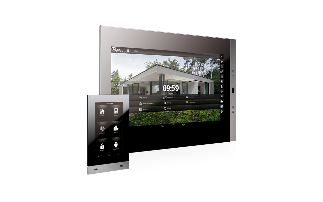 The multi touch screen Divus Touchzone combines building automation and applications from the tablet and smart phone environment, thus offering high functionality and ease of use. Also, quality and design play a major role for the Touchzone. The Divus Touchzone is a high quality, capacitive multi touch screen. The attractive, stand-alone glass front is shockproof. Besides the black and white design, users can choose between covers in aluminium, real glass or other materials such as wood or stone optic or a special coating. Thus, the Divus Touchzone harmonically fits into every existing environment. The ease of use is defined by Android Apps, which can be chosen individually according to the user’s needs. The Divus Apps are optimized for building technology, e.g. door communication. The Touchzone distinguishes itself by flexibility and the large variety of possible combinations – secure building functions are added up by well-known applications such as weather forecast, infotainment, Skype or Facebook. Thanks to its cabling, the Touchzone always offers a secure, constant connection.