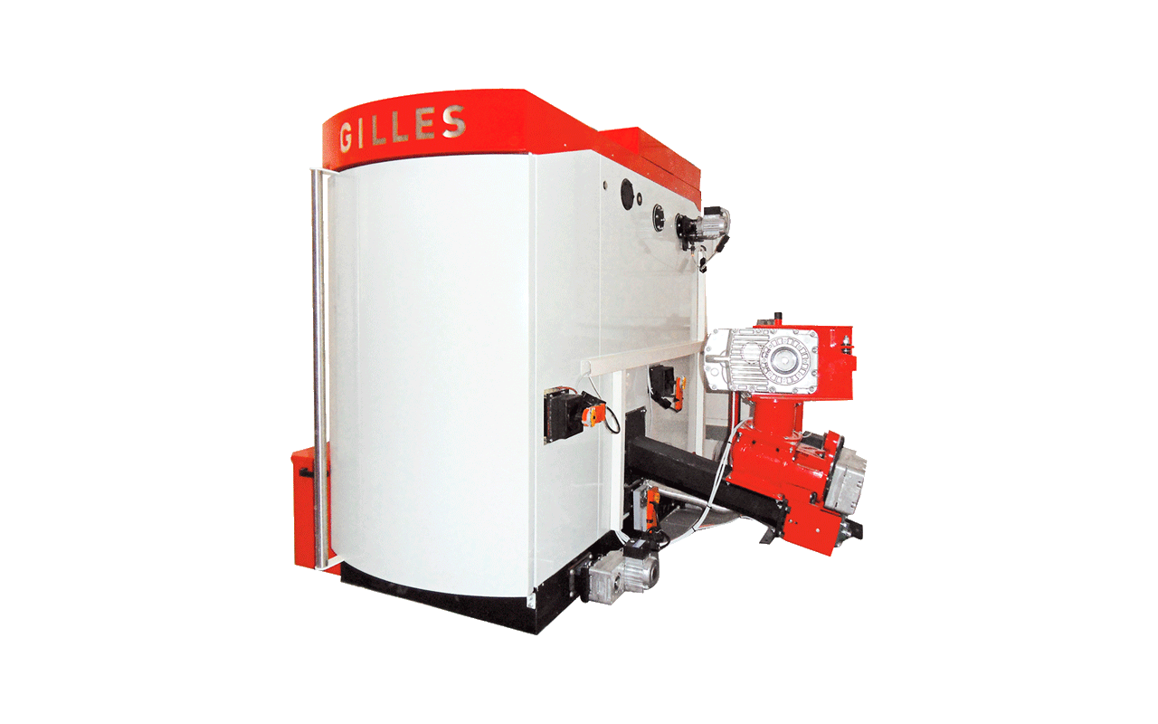 The HPK-VR by GILLES is a highly-efficient, wood chip-burning boiler that features the latest moving grate technology. The extra-large gasification chamber is made of industrial ceramic and works on the basis of the direct pass principle. Gases remain in the combustion chamber for a long time to guarantee a clean burning process. Thanks to the variable-speed induced draught fan and constant monitoring and adjustment of the air quantity, efficiency rates of up to 95.4% can be achieved at all performance levels. The boiler is cleaned automatically by means of a special drive. The fully tested, solid metal rotary feeder reliably separates the heating room from the storage room, thereby ensuring 100% protection against backburning. The impeller blades are set at an angle to the rotation axis, which enhances cutting performance to make it possible to burn difficult, slag-forming fuels such as wood chips with high levels of moisture, bark or needles, corn cobs, rapeseed straw, miscanthus etc.