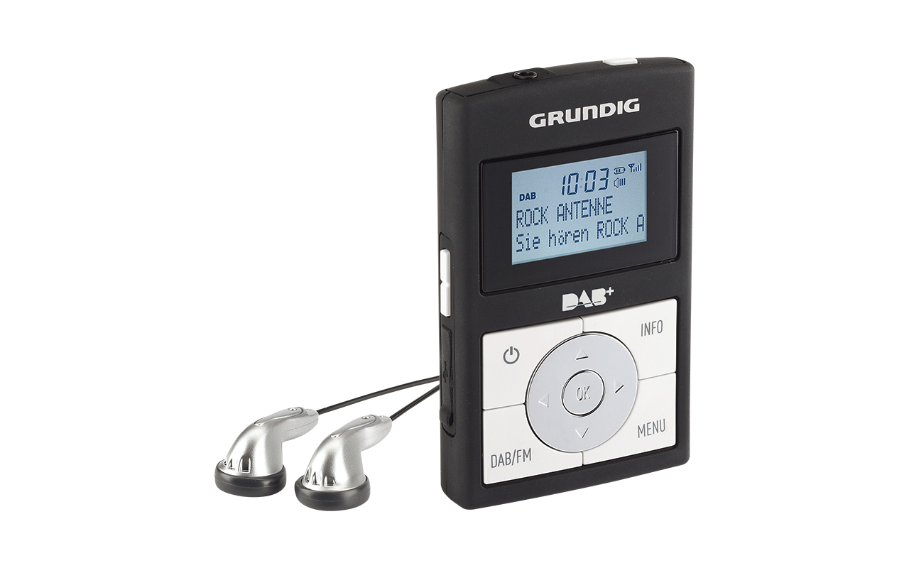 The latest version of the digital radio DAB+ is not only limited to car radio and stationary devices: With the Grundig Micro 75, the excellent radio sound can be carried everywhere, because the small unit is no bigger than a current smart phone. Besides digital radio, also conventional FM radio can be played – both modes offer ten memory stations for the most favorite programs.