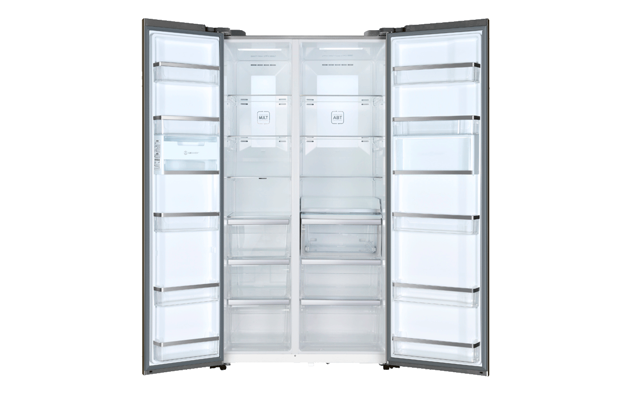 Being an “endurance runner”, the energy efficiency of a fridge is a key factor. Haier’s side-by-side undercuts the requirements of class A by another 60%, making it an A+++ class device. In addition, it offers helpful functions such as the holiday setting. This means that it consumes only 435 kWh over the year. Nevertheless, it holds 792 litres of volume. The myZone is an area, which can be individually used either to store fish or meat at 0°, to carefully thaw or quickly cool down drinks. LED lights optimally illuminate the fridge. The fronts made of security glass are not only extremely elegant, but easy to care and hygienic at the same time.