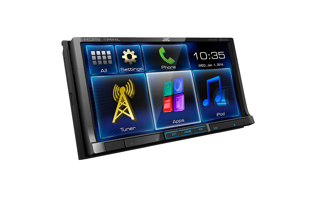 Straightforward controls, superb design and, of course, JVC’s proven outstanding quality are the distinctive features of this DVD receiver. MHL technology allows mobile content to be displayed by the KW-V 50, for further top quality media there is even an HDMI input. Through Siri Eyes Free, the receiver can be voice-controlled; connections for stirring wheel controls and a reverse camera are the finishing touches to this state-of-the-art device.
