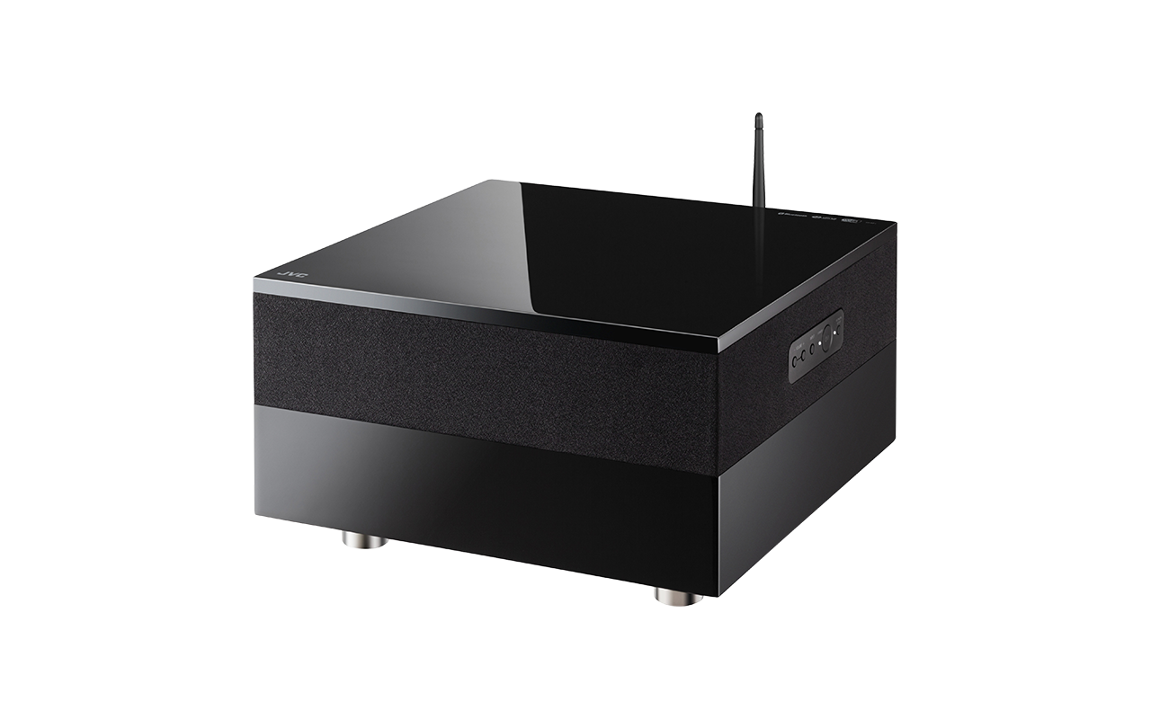 Design meets sound – this is how the manufacturer characterizes the 4.1 audio system JVC SP-AP1. Surround Sound out of one box, from mobile sources via Bluetooth or stationary network sources via W-LAN – the compact cuboid is open for all worlds of sound.