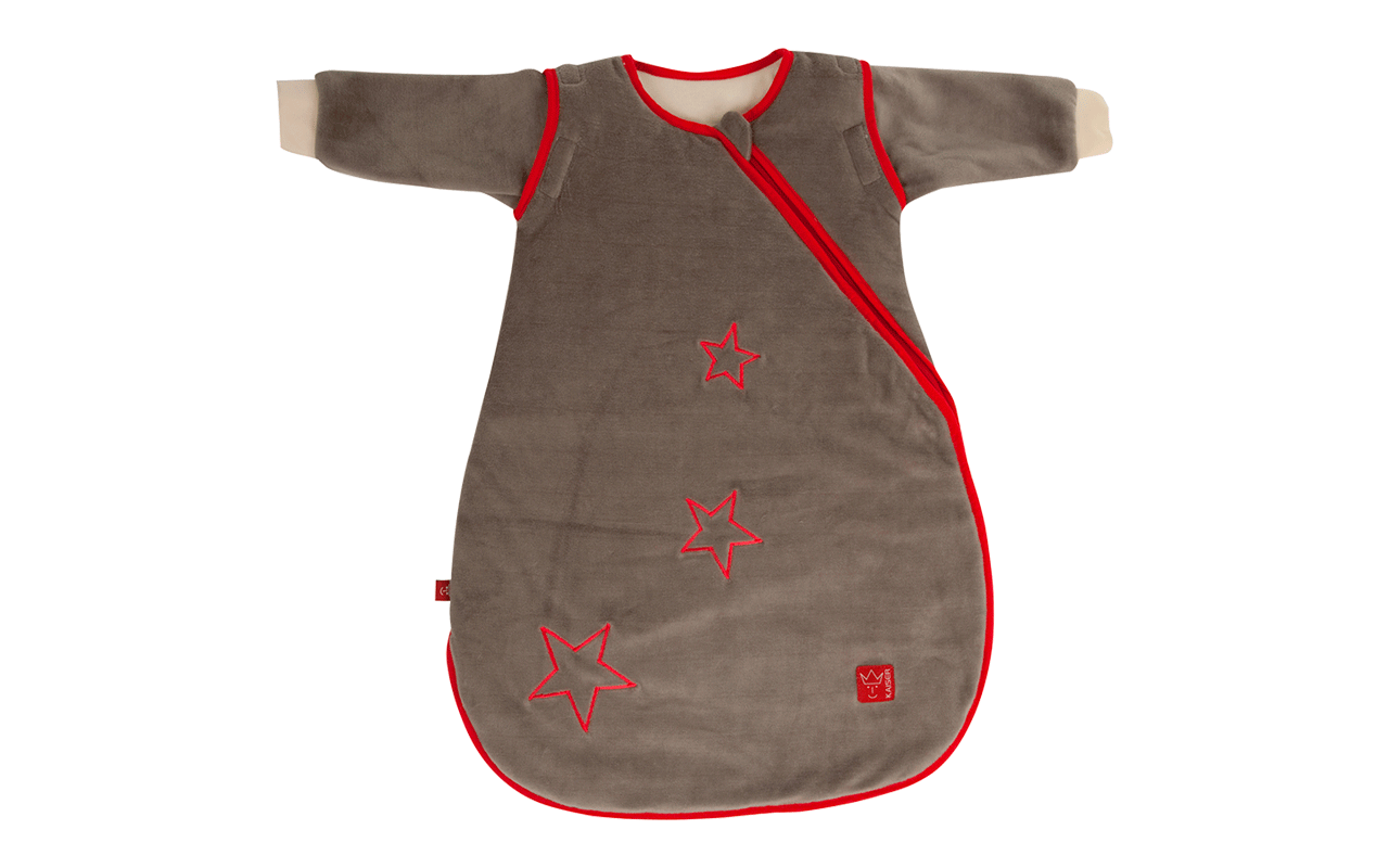 The pleasantly gentle year-round sleeping bag STAR features arms, which are fixed with a Velcro fastener and can be removed on warmer days. Its foot area is extremely large. The special guiding of the zipper is very practical when putting on a baby’s nappy. A skin-friendly zipper protection at the chin protects the baby against harm. The inner material consists of 100% cotton jersey.