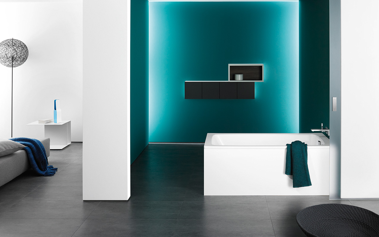 High quality and modern design are key features of the Cayono bathtub from Kaldewei. The lines of the Cayono have been clearly adapted to the design language of modern architecture. Straightness, small radiuses and a consequent geometry signalise clarity, harmony and stringency in a world that is becoming more and more complex and hectic every day. Everyday use is prerequisite with the Cayono: steep side walls create a large space interior of the bathtub even with small outer measurements. The evenly made bottom of the tub offers a large area for comfortably taking showers. High quality materials such as steel enamel as well as the robust surface round off the image of the Cayono. Besides white, further sanitary colours are available, also pearl effect and anti-slip and vollant slip.