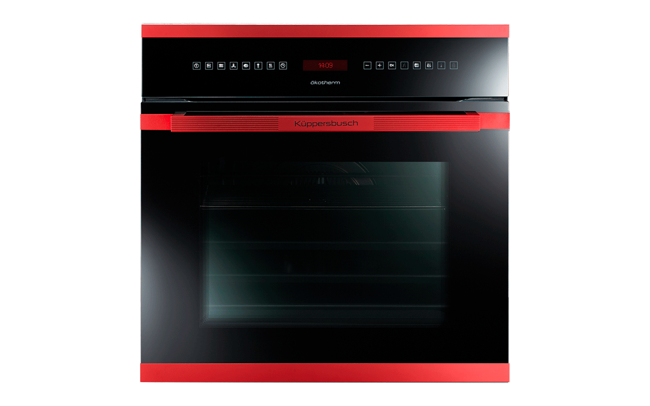 The built-in oven EEB 6650.9JX from Küppersbusch features high quality and design as well as ease of use and functionality. The Küppersbusch individual concept offers several opportunities to adapt to the existing design. The front is available in black or white; for the design elements, the user can choose between seven different colours and materials – even elements, which have been refined using Svarovski crystals. The use of high-end materials such as glass and stainless steel guarantees a long product lifetime. One example is the 3-fold glazed door of the oven, which is made of a completely flat surface without any stamping or embossing. The user controls the over by just one tip of the finger on the back-glass sensors; the electronic system guides the user step-by-step through all settings. The oven offers 13 electronic baking and roasting programmes, which can be chosen by the sensor buttons. In total, 17 functions are available. Cleaning is also easy: Thanks to the new, even softer Enamel-coating, splashes at the interior walls can be removed easily.