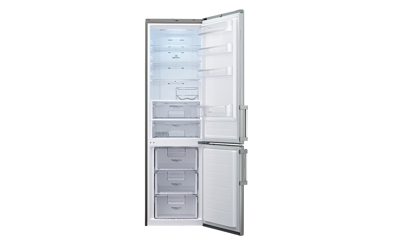 LGs brilliant compressor technology is very quiet and robust, thus this part of the GBB 530 comes with an incredible 10-year guarantee. Even more important is the positive energetic aspect, because the elegant refrigerator by LG stands out with a ranking which is 10 percent below the A++++ seal. There is no way to work more economically. A perfect distribution of the cooling air in the interior creates the same, optimal environment for all food. Special drawers for meat and fruit and an LED interior lighting proof that no detail has been left out in the development.