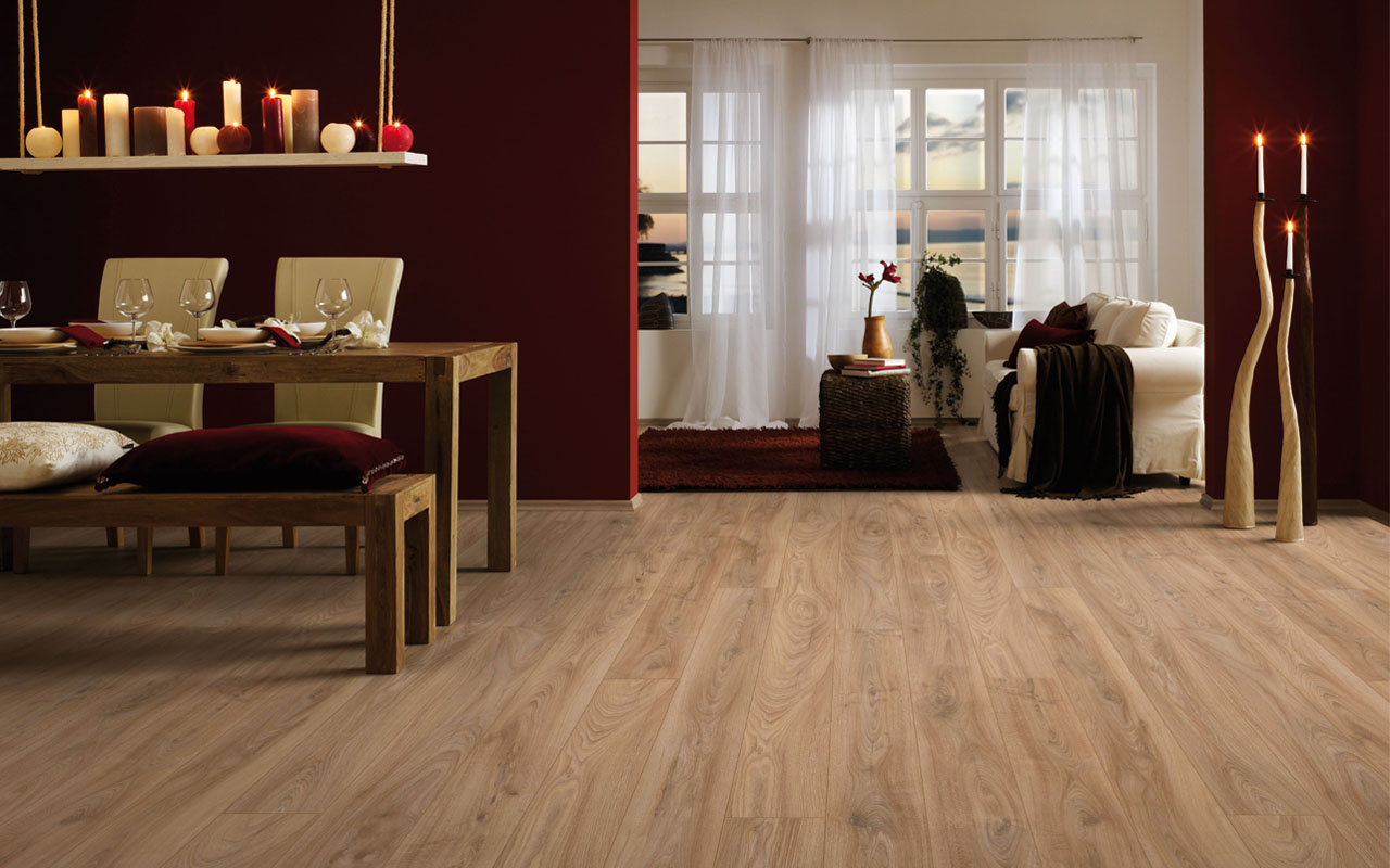 The laminate World Edition from Logoclic offers high quality in combination with convincing functionality and an appealing design. The Logoclic laminate is lightfast, resistant against stains, extremely durable and lasting. In addition, the World Edition is easy-care and resistant against bumps, abrasion and scratches. The laminate fulfills the NK 32 norm and can therefore be used in a commercial sector with a medium use. The panel length of 2.000 mm and a synchronous, planed-by-hand surface create a natural look, which naturally represents wooden structure. The panels have been manufactured from real oak boards, the total strength of 10 mm outperforms the everyday requirements. Logoclic’s World Edition has 20 year guarantee.