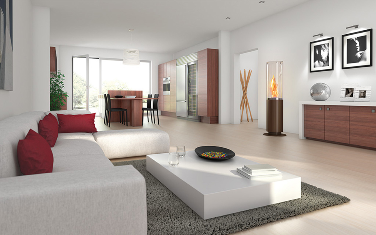 Bioethanol fireplaces enjoy great popularity because they make it easy to use fire in all places where there is no fireplace. The ebios-fire Tower by Spartherm demonstrates this advantage together with an excellent design, selected materials and latest technology. Its cylindric basis features two tanks for uninterrupted operation and a pump which can be remote-controlled. This makes the transportable monolith with the impressive flame image the state-of-the-art variant of this technology.