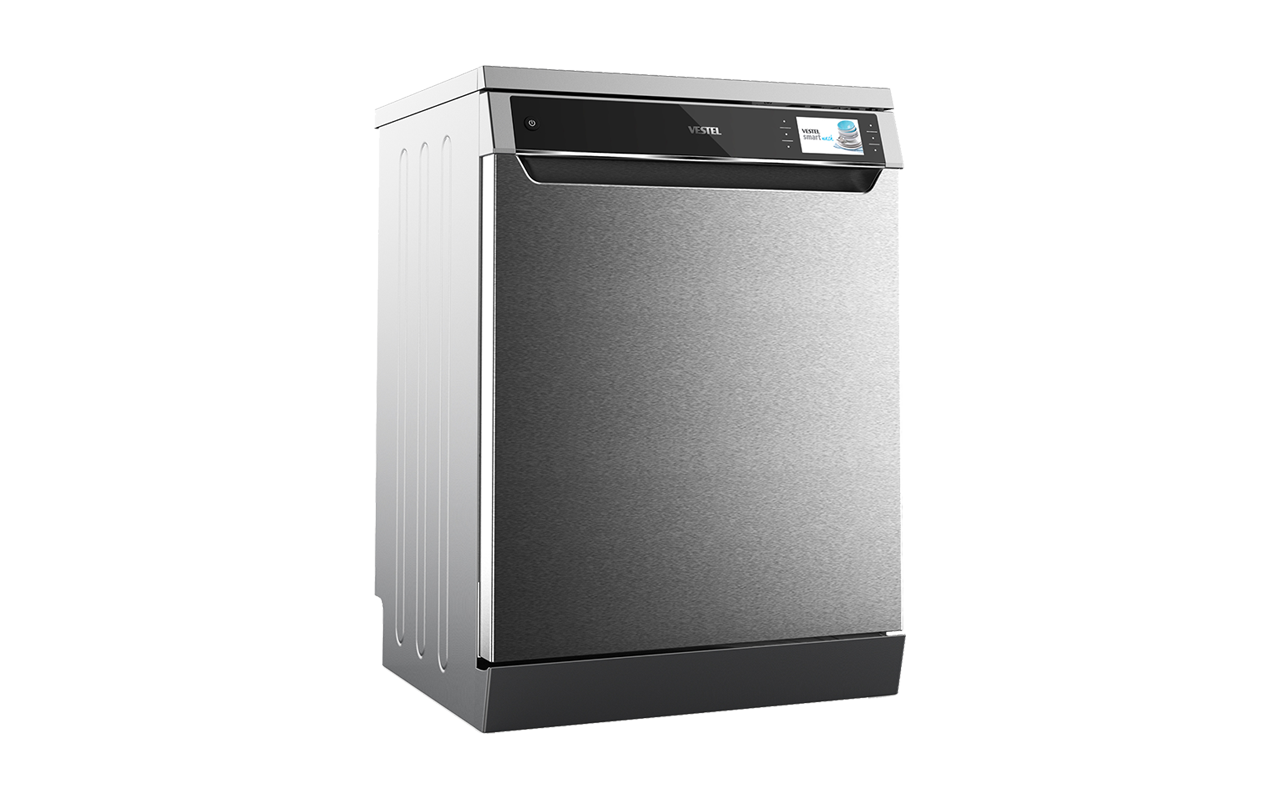 The Inline dishwasher from Vestel offers modern design in combination with high quality and ease of use. The different functions are controlled by a capacitive touch control and a TFT-LCD display. Both are located at the slightly tilted operation field and are easy to read and handle. The display is hidden behind an acrylic panel, the horizontal chrome bar along the front panel underlines the grip area. This connection between acrylic and chrome create the special look of the Inline. The Inline holds 12 covers. A third cutlery basket can be placed in the upper basket. When loading, the height of the mid basket can be adapted. Foldable trays help to position the mid and lower basket, resulting in a high flexibility for loading the dishwasher. Further options are an extra hygienic function for care products and an extra drying function.