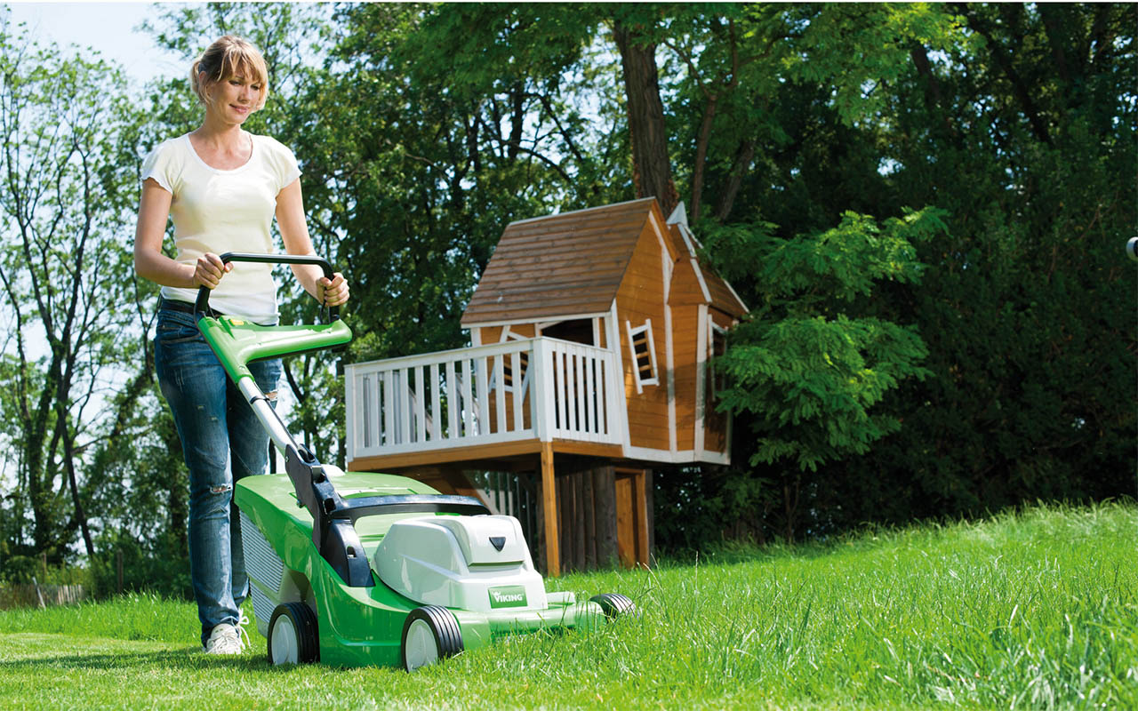 The new VIKING battery lawn mower “MA 443 C” convinces by technical innovation, simple handling and an excellent cutting pattern. Small, calm, flexible and comfortable – the battery lawn mower MA 443 C features a lot of advantages and a perfected battery technology. A special feature of the MA 443 C is the mono comfort handlebar with one instead of two rails. Thus, the user has more free space and can directly access the generously dimensioned grass catcher. The wind blades create the beautiful cutting pattern. The specially formed blades create a strong airstream while mowing. This lifts the grass and the sharp blades cut is off exactly. The aerodynamic mower body is formed of torsion-resistant and shock-resistant polymer; the wind blades are exactly fitted to each other in form and functionality.
