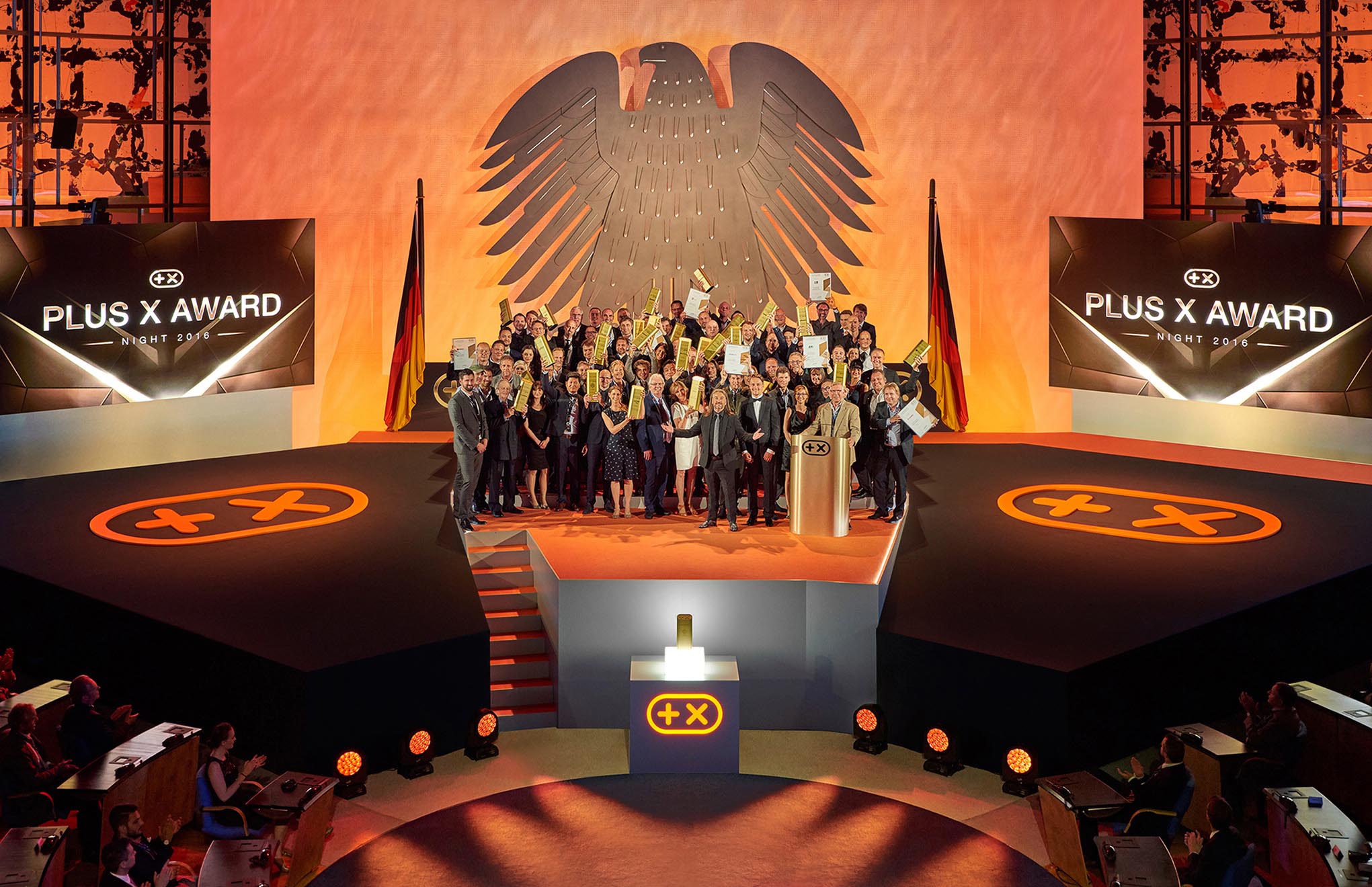 The highly-awaited award ceremony of the Plus X Award took place yesterday night in the building of the First German Bundestag in Bonn. More than 350 invited guests enjoyed the grand honoring of the 25 Most Innovative Brands, the most successful brands of the preceding participation phases of the year.