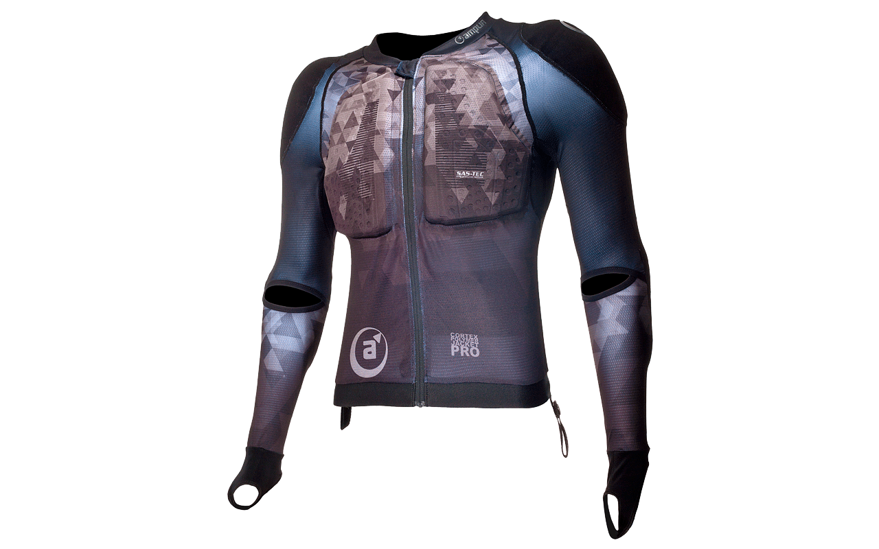 Exakt positioniert und eng am Körper anliegend sorgen die Protektoren am Modell „Cortex Polymer Armor“ der Marke AMPLIFI für eine maximale Sicherheit des Trägers. Das Kleidungsstück im Überblick: