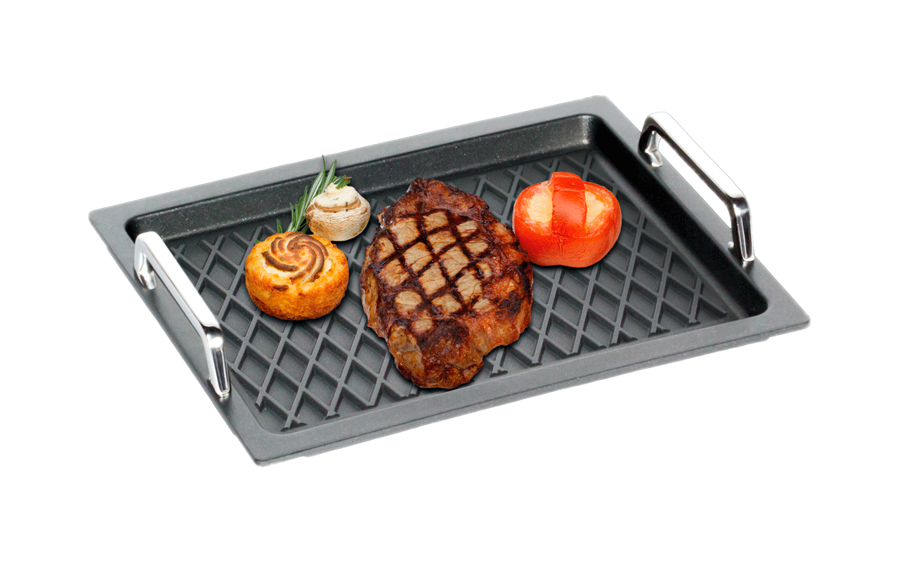 Der „Gastronorm 2/3 BBQ-Grillboden“ ist ein einzigartiges, zum Patent angemeldetes Grillrippen-Design für das perfekte BBQ-Grillergebnis aus dem Hause AMT Gastroguss und darüber hinaus für alle Grills geeignet. Der 9 mm starke, verzugsfreie Boden stellt optimalen Kontakt zum Herd her, um die Wärme direkt und verlustfrei aufzunehmen und dann ans Bratgut weiterzuleiten. Durch die extrem schelle Aufheizung, gleichmäßige Wärmeverteilung und gute Wärmespeicherung ist sie ideal für alle Gerichte geeignet.