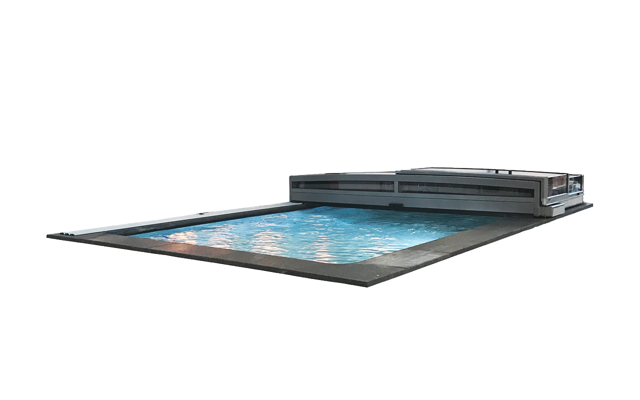 + verfahren von Poolüberdachungen ohne Schienensystem