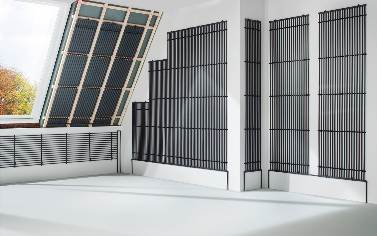 Durch das Flächenheiz- und Kühlsystem von aquatherm wird ein angenehmes Raumklima ohne störende Zugluft geschaffen. Mit dieser Technik kann je nach gewählter Wassertemperatur wahlweise geheizt oder gekühlt werden. Das hochwertige „aquatherm black system“ lässt sich problemlos in Wänden, Böden und Decken installieren, auch ein nachträglicher Einbau ist möglich. Zudem ist das System sehr energieeffizient. Die automatische und geräuschlose Umschaltung von Heiz- auf Kühlbetrieb komplettiert das System von der einfachen Einzelraumregelung bis zur perfekten Regeltechnik.