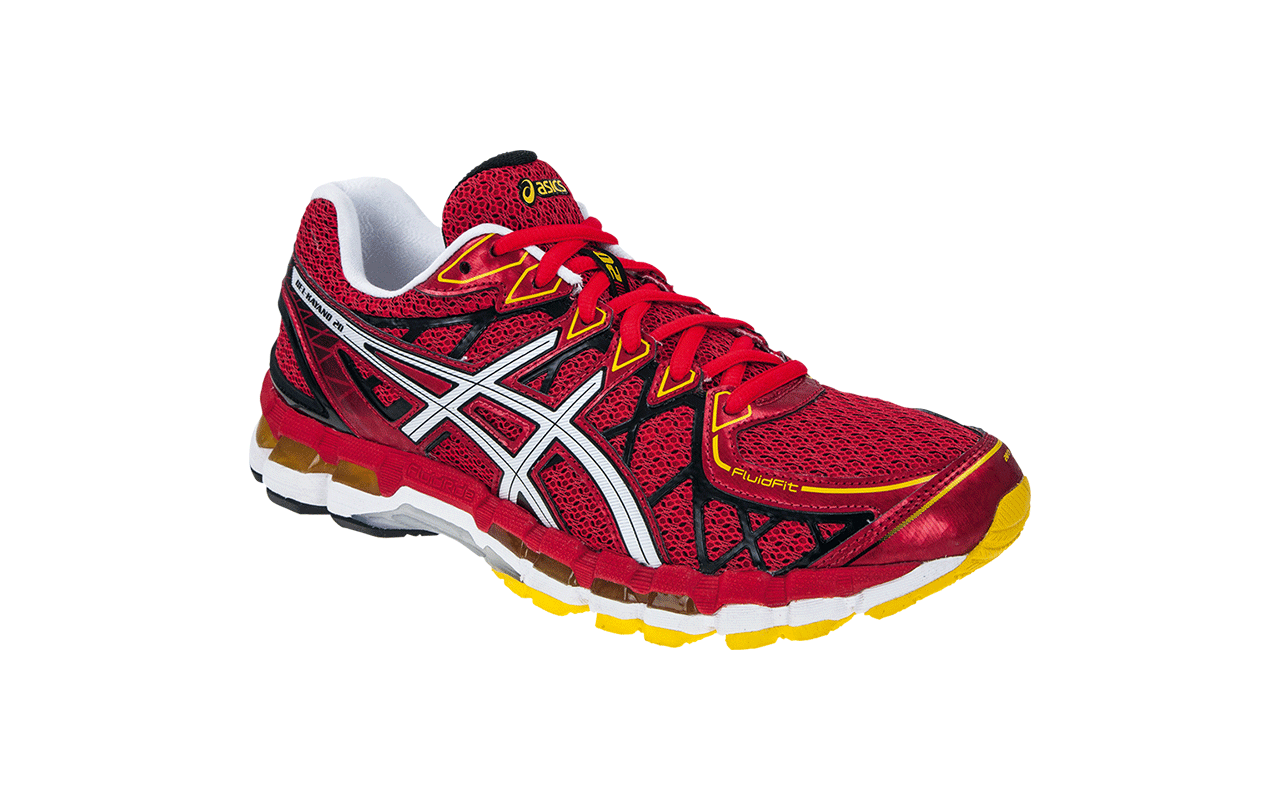 Der „Gel-Kayano 20“ von Asics überzeugt besonders durch sein geringes Gewicht und hervorragende Dämpfungseigenschaften. Für optimale Dämpfung und Rückfederung sorgt die FluidRide-Technologie, welche aus zwei unterschiedlichen Mittelsohlenschichten besteht. Das Mesh-Obermaterial bietet dem Läufer angenehmen Tragekomfort und uneingeschränkte Bewegungsfreiheit. Für einen noch effektiveren Laufstil sorgt die GUIDANCE-LINE-Technologie, welche den Fuß im gesamten Bewegungsablauf unterstützt.