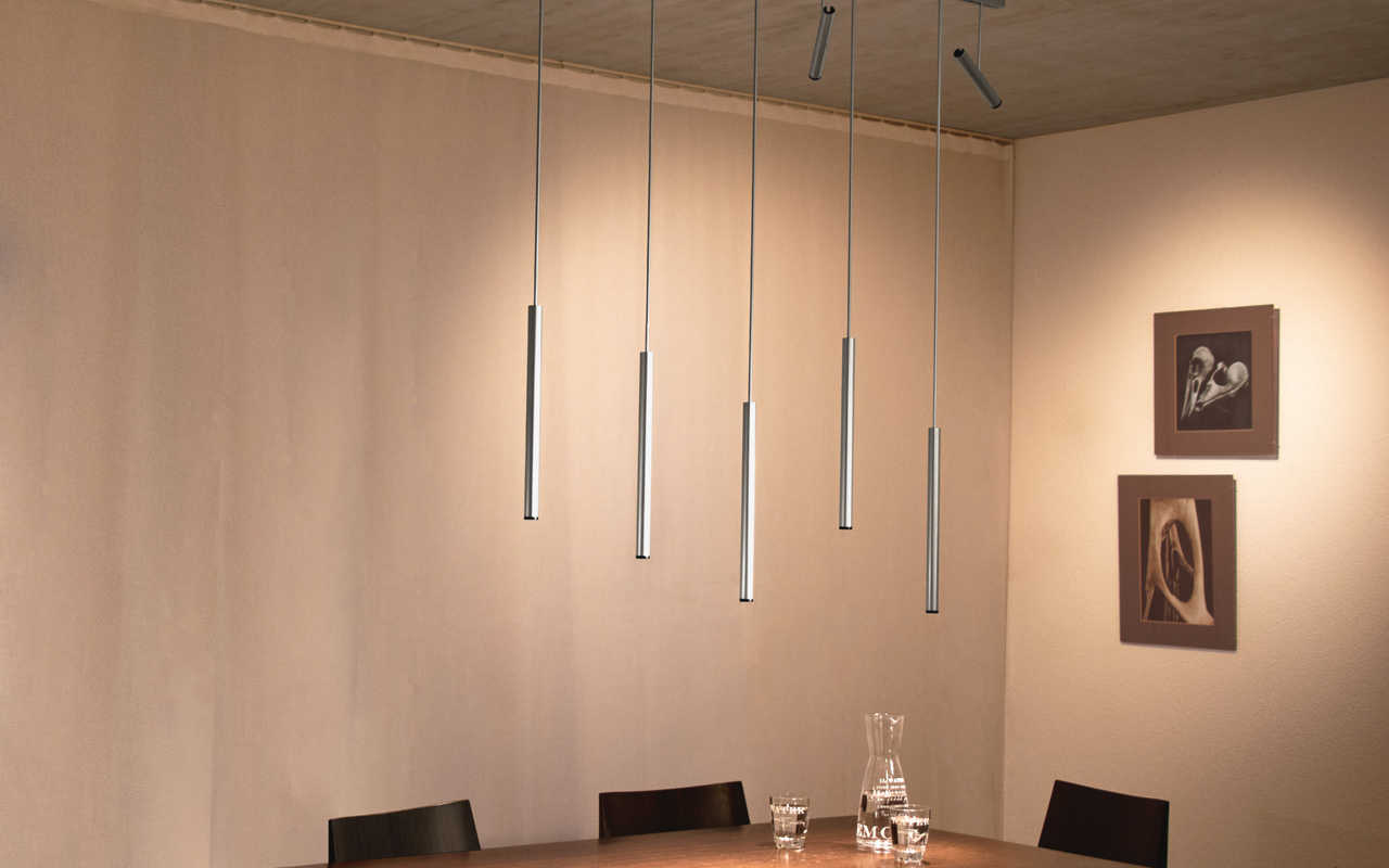 LINIjA ist ein Hängeleuchtensystem in Perfektion, flexibel und geeignet für alle Tisch- und Tresenarten. In der Höhe oder aber entlang einer Schiene können die Lichtpendel sowie die dreh- und schwenkbaren Strahler beliebig frei positioniert werden und ermöglichen eine intuitive und unkomplizierte Anpassung der Lichtverhältnisse, zum Beispiel bei ausziehbaren Tischen. Hierbei sind die Pendel dank einer Entblendungstechnologie stets außerhalb des Sichtfeldes. Baltensweiler bietet Schienen in der Länge von 90 cm, 140 cm, 190 cm und 240 cm und zudem die Möglichkeit, dank durchkontaktierender Schienenverbinder, die Schienenlänge auch zu erweitern. Ein smartes Leuchtensystem mit Stil!