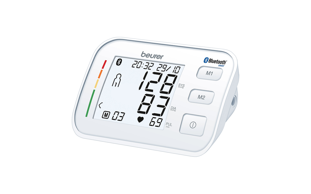 Hohe Qualität, Design, Bedienkomfort und Funktionalität zeichnen das Blutdruckmessgerät BM 57 von beurer aus. Mit dem weißen Look, den hinterlegten Funktionstasten und dem Display mit weißer Hintergrundbeleuchtung passt sich das BM 57 aktuellen Trends an. Der Blutdruck wird über eine Manschette am Oberarm gemessen. Die hohe Qualität zeigt sich in der Präzision und Messgenauigkeit. Das Gerät ordnet den Blutdruck anhand einer farbigen Skala ein; zusätzlich verfügt es über eine Erkennung für mögliche Herzrhythmusstörungen. Neben eigenen Speicherplätzen kann das BM 57 über Bluetooth mit der kostenlosen Beurer HealthManager App oder der Health Manager Software verbunden werden.