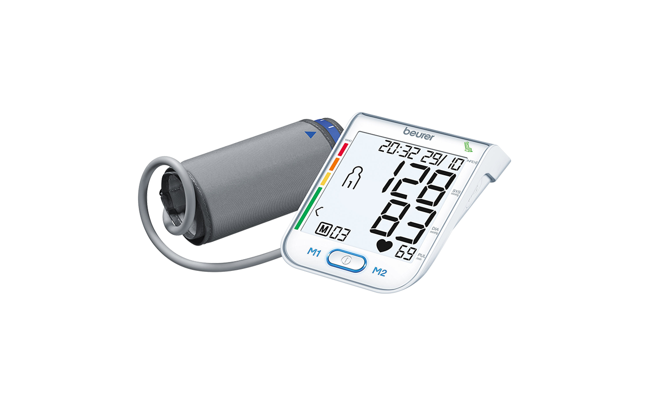 Das Oberarm-Blutdruckmessgerät BM 75 ist mit NFC-Technologie ausgestattet und garantiert somit eine einfache, kabellose Übertragung der gemessenen Werte auf jedes NFC-fähige Smartphone. Die Messwerte, die so auf das Smartphone übertragen wurden, können mit der kostenfreien HealthManager App verwaltet werden. Mit Verlaufsgrafiken und Messwerttabellen erhält man einen schnellen und komfortablen Gesamtüberblick über die Messwerte. Mit Hilfe der Export- oder E-Mail-Funktion können die gewonnenen Daten sehr komfortabel an andere Personen versendet oder zur Verfügung gestellt werden. Das BM 75 von Beurer bestimmt automatisch während der Blutdruckmessung, ob eine mangelnde Kreislaufruhe vorliegt oder nicht. Die farbige WHO-Skala gibt umgehend Rückmeldung über die Einordnung der Blutdruckmesswerte nach den WHO-Richtlinien und hilft kritische Blutdruckwerte sofort zu erkennen.