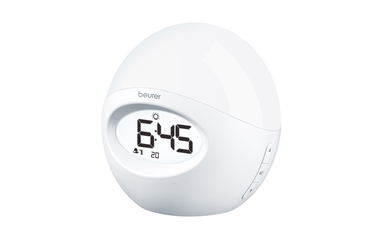 Ein schriller Wecker kann einem den schönsten Morgen zur Hölle machen. Der Lichtwecker Beurer WL 90 4-in-1 sorgt dafür, dass man jeden Abend freidlich einschläft und jeden Morgen sanft beginnen kann. Seine 2500 Lux starke LED-Beleuchtung kann in verschiedensten Farben Sonnenauf- und -untergang simulieren und den Hell-Dunkel-Übergang mit Musik aus dem Radio oder vom per Bluetooth angebundenen Smartphone begleiten lassen. Die Lichtintensität kann sich jeder Nutzer in 20 Stufen nach Wunsch einstellen, und wer so gar keine Idee hat, wie er akustisch geweckt werden möchte, kann aus zehn vorprogrammierten Aufwachmelodien auswählen. Was 4-in-1 bedeutet? Die kleine Kugel ist Lichtwecker, Stimmungslicht, Leselampe und Musikstation in einem Gerät.