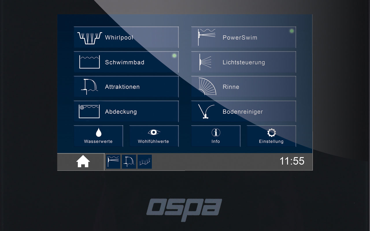 Schon seit Jahren ist die Firma Ospa führender Hersteller von Schwimmbadtechnologie. Der innovative Steuerungscomputer „BlueControl IV Web“, der in Schwimmbädern vollautomatisch und präzise Funktionen überwacht wie Wasserwerte, Wasserattraktionen, Whirlpools oder Licht- und Lüftungstechnik, wurde ausgezeichnet in den Kategorien High Quality, Design, Bedienkomfort und Funktionalität. Das Produkt überzeugt besonders durch: