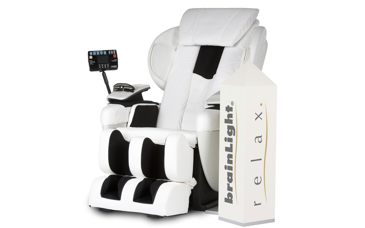 Entspannung auf Knopfdruck bietet brainLight mit seinem erweiterten Modell „brainLight- relaxTower 3D FLOAT PLUS “. Der Shiatsu-Massagesessel bietet ein breites Angebot an verschiedenen Anwendungsprogrammen – erweitert speziell für den Sportbereich – und ermöglicht es, durch angenehme Wellnessmusik und eine Visualisierungsbrille, welche beruhigende Farben und Formen vor dem inneren Auge entstehen lässt, loszulassen und zu entspannen. Während der gesamten Anwendung wird man von einer angenehmen Stimme begleitet, welche Anweisungen und Hinweise äußert. Neu ist ebenfalls die Rollenmassage im Fußsohlenbereich, die verbesserte 3D-Technologie im gesamten Massagebereich und die effektive Schulterluftdruckmassage.