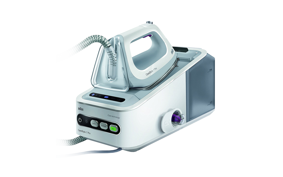 Hoher Dampfdruck und die patentierte, abgerundete FreeGlide 3D Bügelsohle machen das Bügeln mit den Dampfbügelstationen Braun CareStyle 7 schneller, effizienter und stressfreier.