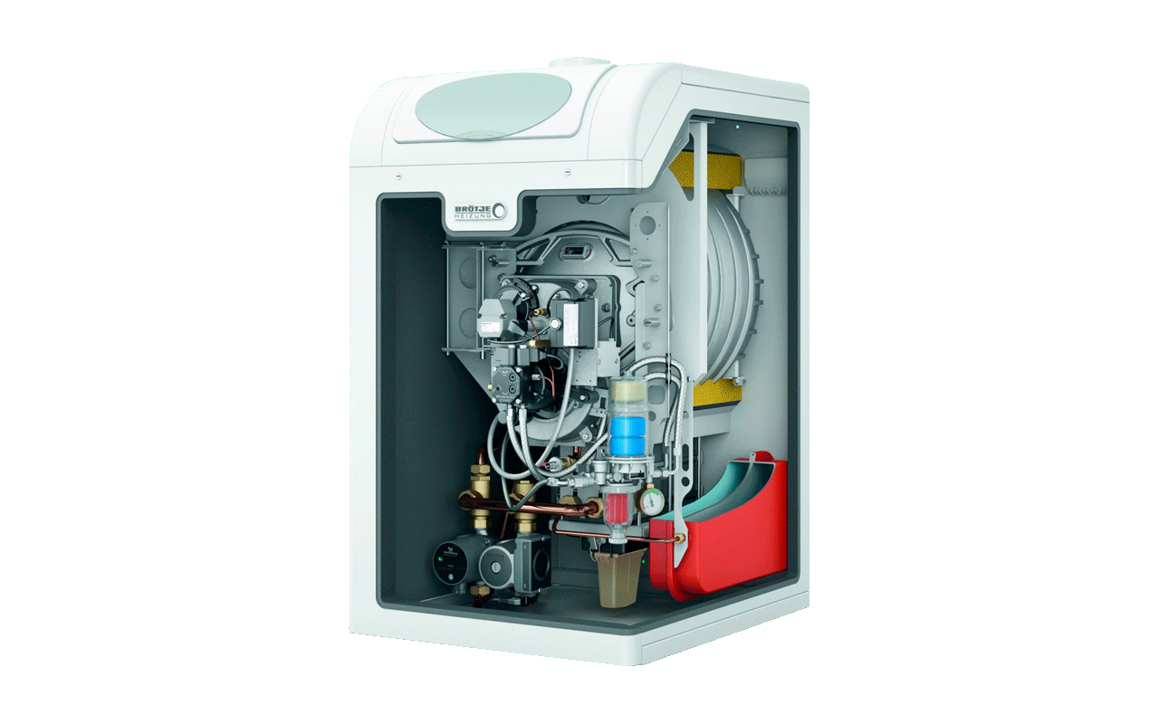 Der „NovoCondens BOB 20“ aus dem Hause BRÖTJE ist ein bodenstehender und platzsparender Öl-Brennwertkessel. Seine Wärmeleistung ist stufenlos und bedarfsgerecht im Bereich von 50% bis 100% regelbar. Er hat eine geringe Takthäufigkeit bedingt durch den zweistufigen Öl-Blaubrenner und 24l Wasserinhalt. Der Primärwärmetauscher besteht aus leichtem Aluminium-Silizium und der Kondensationswärmetauscher aus robustem Carbon. Dadurch ist eine geräuscharme Betriebsweise möglich.