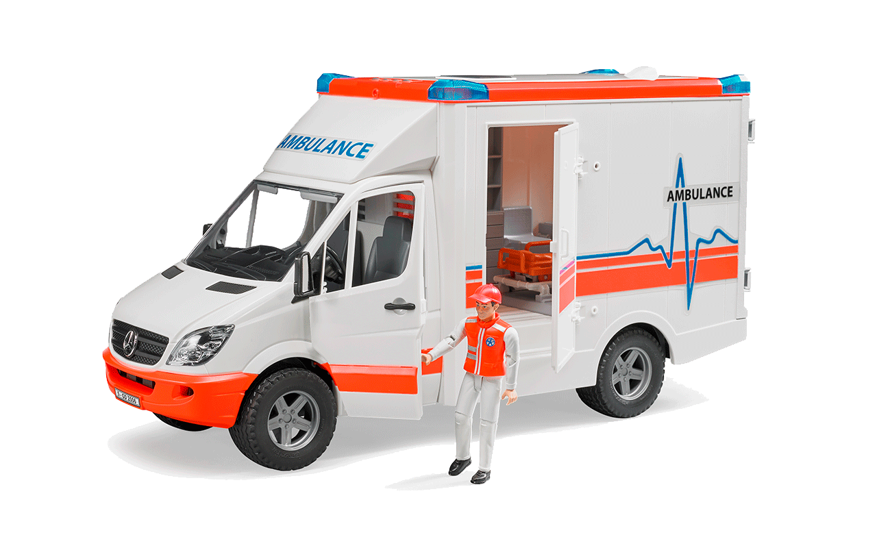 BRUDER MB SPRINTER AMBULANZ MIT FAHRER UND ZUBEHÖRSET RETTUNGSDIENST
