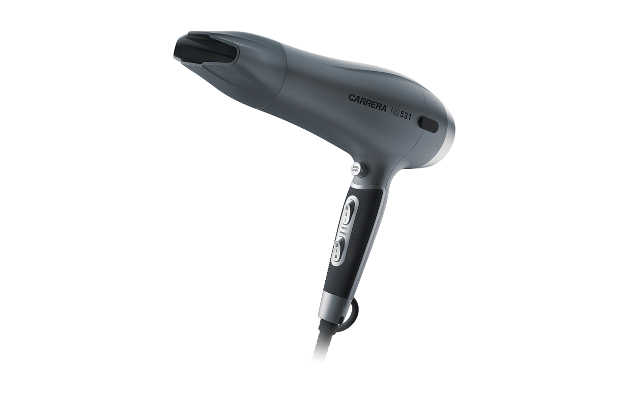 Gerade bei einem Haartrockner sollte das Versprechen, das dynamisches Design gibt, durch entsprechende Leistung unterstrichen werden. Der Carrera Haartrockner No. 531 kann diesen Anforderungen standhalten, denn seine Turbine liefert mit 2.400 Watt genau die Leistung ab, die auch in ihn hineingesteckt wird. Doch Druck und Hitze sind nicht alles: Die Luft wird ionisiert, und der Zusatz von Argan-Öl in die ausgeblasene, warme Luft sorgt zusätzlich dafür, dass nach dem Trocknen glatte, glänzende und geschmeidige Haare den Look der Trägerin auf die Spitze treiben. Und zum Fixieren der Frisur steht eine Kaltluftstufe zur Verfügung.