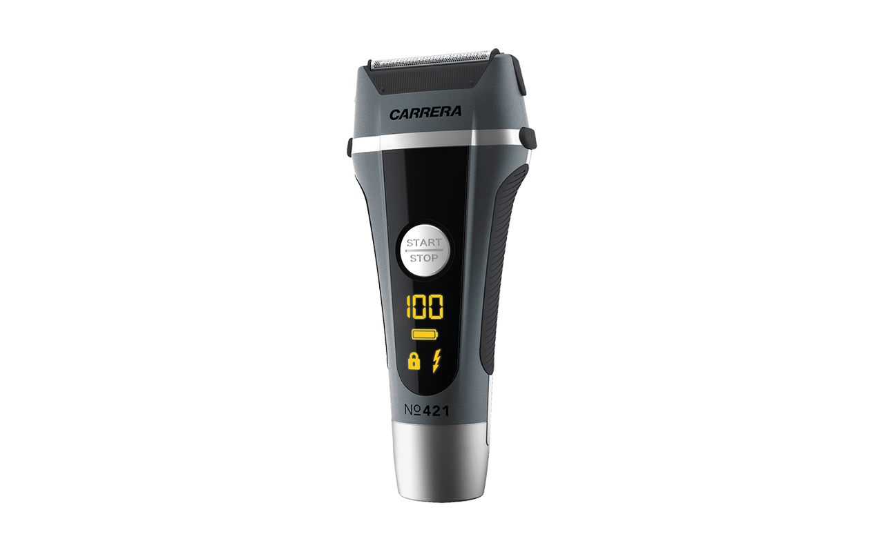 Im Gegensatz zu seinem großen Bruder ist der Carrera Rasierer No. 421 eher etwas für das kleine Reisegepäck. Der schlanke 3-Track-Rasiere, dessen Schwingkopf mit einem Travel-Lock festgestellt werden kann, trägt auch im leichten Gepäck kaum auf. Und ein zusätzliches Ladegerät braucht er auch nicht, denn er kann über den USB-Port eines Notebooks geladen werden – oder über das Ladegerät vom Smartphone. Auch wenn er nur der kleinere Bruder ist: Er weiß immer, welcher Anteil seiner Akkuladung noch an Bord ist und teilt das über eine LED-Anzeige gnadenlos ehrlich mit. Und legt sich mit der Gummierung seines elegant gestylten Gehäuses sicher in die Hände seines Nutzers.