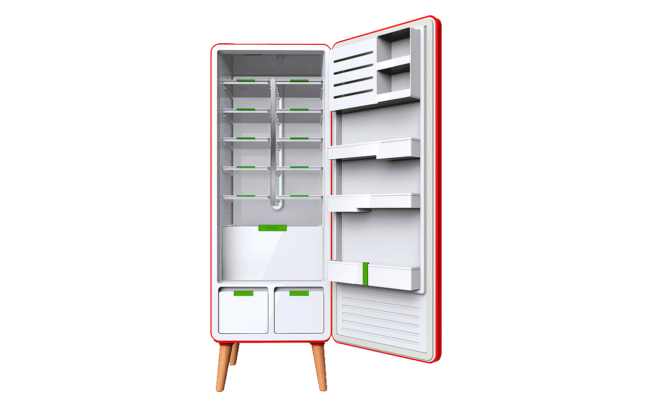 Kühlschränke im Bürobereich sind nahezu unverzichtbar und dieser hier kann sich sehen lassen. Das elegante Äußere des Retro Office Refrigerator ist aber nur ein Punkt, der für den Büroeinsatz spricht, der andere ist die durchdachte Aufteilung. Zehn herausnehmbare Tabletts dienen einerseits der Lagerung, können aber andererseits direkt zum Essen im Büro benutzt werden, was die Abläufe vereinfacht. Ein zusätzlicher, gemeinschaftlicher Bereich für die Lagerung von allgemein genutzten Lebensmitteln, ein Getränkefach mit einer zusätzlichen Tür sowie ein kompaktes Gefrierfach runden das Angebot ideal ab.