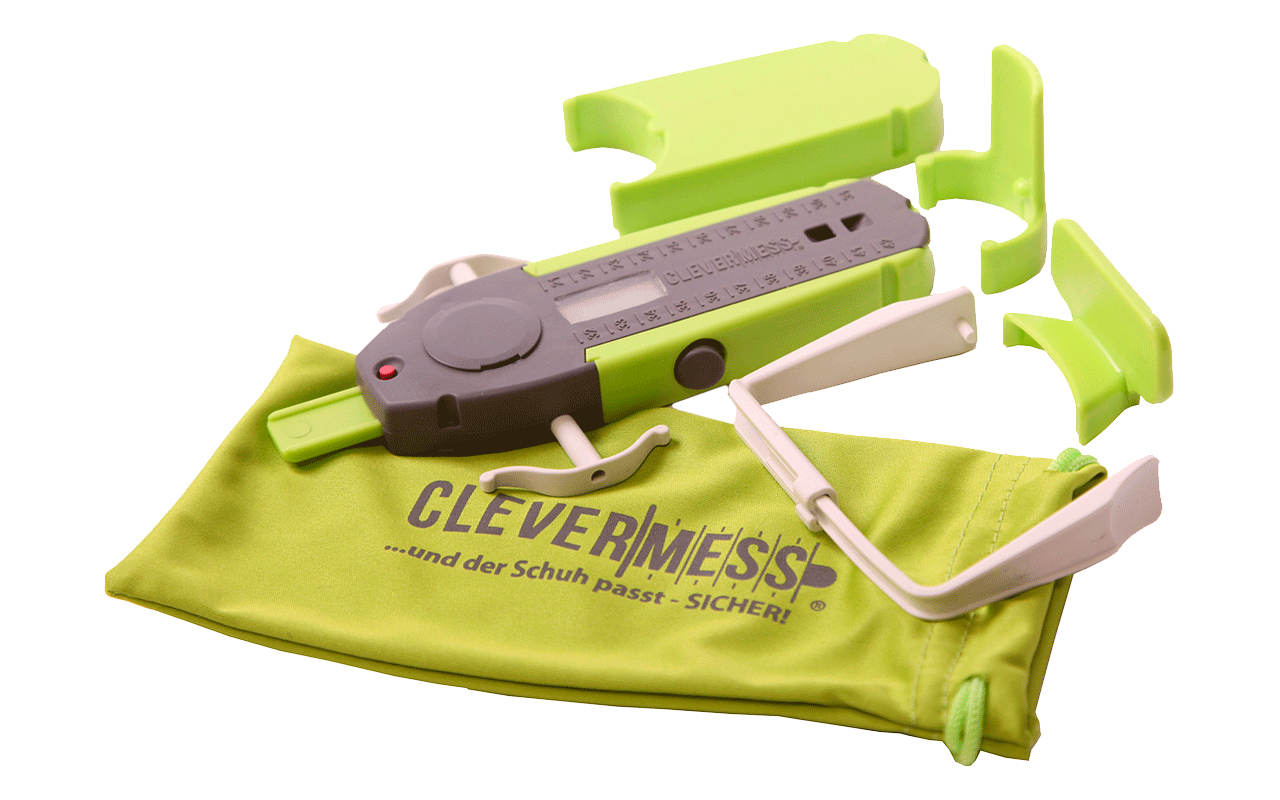 Das Clevermess Junior Messsystem zeichnet sich besonders durch seine Funktionalität aus. Es macht es Eltern möglich, den Fuß des Kindes in Länge und Breite zu vermessen und mit den Schuhen zu vergleichen. So können sie sicher feststellen, ob der jeweilige Schuh noch passt. Schäden an den Füßen oder Haltungsprobleme können so vermieden werden. Das System ist patentiert.