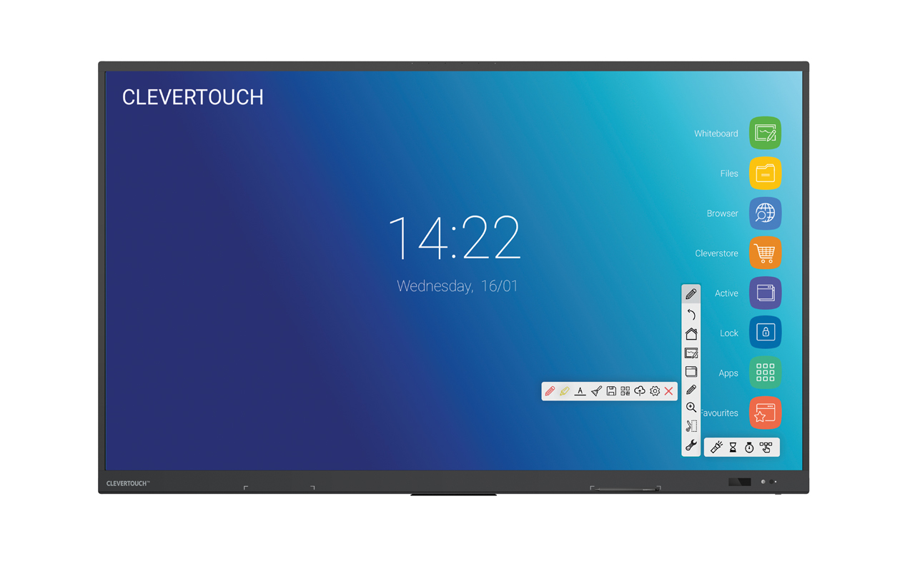 So geht Digitalisierung an Schulen! Clevertouch bietet mit der Impact-Reihe mehr als bloß ein Smartboard. Die exakt auf alle erdenklichen Anforderungen der Lehrpläne zugeschnittenen Geräte verfügen über eine Vielzahl an kostenlosen Apps und Softwarelösungen und sind speziell entwickelt für das digitale Klassenzimmer und zur Gestaltung eines aktiven und spannenden Unterrichts. Inhalte können problemlos von Android-, iOS-, Windows- oder Chrome-Geräten sowie über WiFi, Bluetooth oder einen adaptiven Slot-in-PC übertragen werden. Auch über eine Gigabit-LAN-Integration verfügt das Gerät sowie eine Benutzeroberfläche in 4K-Auflösung, 2 x 15 Watt-Lautsprecher und Line Array Mikrofone. Dank der High Precision-Technologie ist flüssiges Schreiben mit dem Finger oder dem Stift ohne Verzögerung möglich.