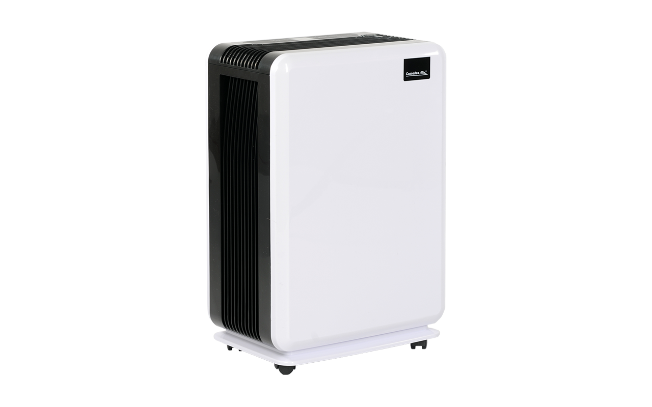 Der Luftentfeuchter Demecto 10 von Comedes bietet eine hohe Qualität, gepaart mit Bedienkomfort und Funktionalität. Für die Produktion des Demecto 10 wurde Aluminium und ABS-Kunststoff verwendet. Das sichert die Stabilität des Gehäuses, garantiert eine lange Lebensdauer und reduziert gleichzeitig die Geräuschentwicklung. Der Demecto 10 ist in der Lage, automatisch die gewünschte Luftfeuchtigkeit in einem Raum aufrecht zu erhalten. Alternativ kann er die Luftfeuchtigkeit in Abhängigkeit von der Raumtemperatur regeln und so unterschiedliche Anforderungen, je nach Raum, berücksichtigen. Für die Entfeuchtung von Räumen beispielsweise nach einem Wasserschaden steht ein Dauerbetrieb zur Verfügung. Die Steuerung erfolgt über verschiedene Tasten inklusive An- und Abschalttasten sowie Timer. Ist der Wassertank voll, schaltet sich der Demecto 10 automatisch aus und signalisiert dies über ein visuelles und ein akustisches Signal.