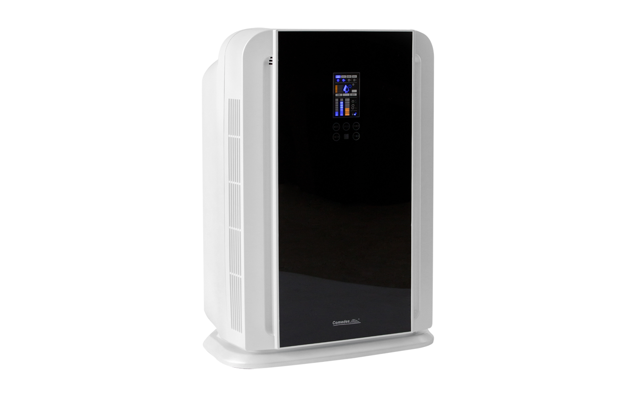 Der Luftreiniger LR 700 von Comedes besticht durch sein Design und weist einen hohen Bedienkomfort und eine gute Funktionalität auf. Das Gerät ist im zeitlosen Schwarz-Weiß Design gehalten und lässt sich so unauffällig in jeden Raum integrieren. Das mehrfarbige LED-Display verbindet Design und Funktionalität. Die Luftein- und auslässe beruhen auf aerodynamischen Berechnungen, optimieren so den Luftstrom und minimieren die Geräuschentwicklung. Sämtliche Funktionen können entweder über das Touch-Panel gesteuert werden oder über die Fernbedienung; eindeutig definierte Taster ohne Doppel- oder Kombinationsbelegung erleichtern die Bedienung. Der Luftreiniger kann unterschiedlichste Partikel filtern und absorbieren – dazu zählen Pollen, Hausstaub, Schimmelsporen und flüchtige Verbindungen wie Küchengerüche oder Zigarettenrauch. Der Comedes LR 700 kann darüber hinaus Bakterien und Viren abtöten.
