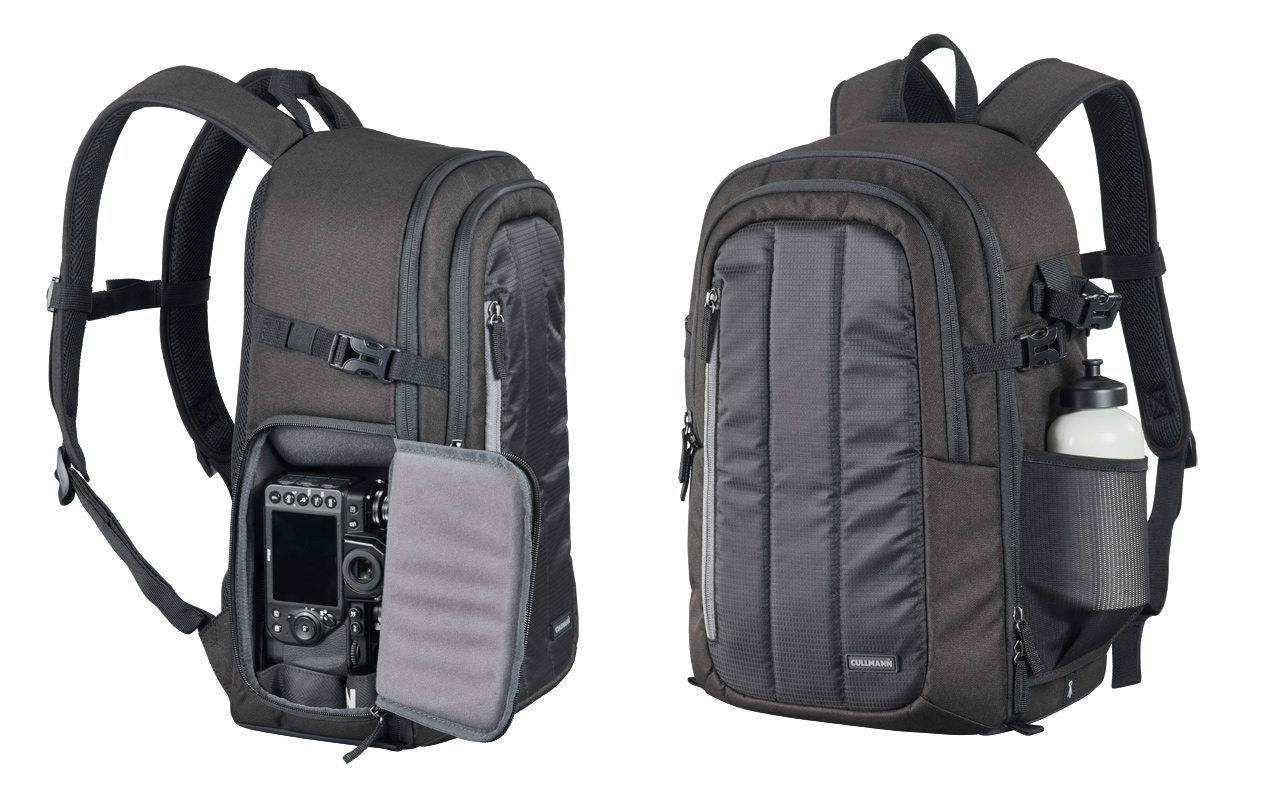 Die Seattle TwinPack 400+ Fototaschen von Cullmann eignen sich für Systemkameras ebenso wie für DSLR-Kameras mit Zubehör. Durch flexible Inneneinteiler kann der Daypack in einen klassischen Fotorucksack umgebaut werden. Das Platzangebot im Innern wird durch die Außentasche mit Gummizug für Trinkflaschen und die seitliche Tragevorrichtung für das Stativ ergänzt.