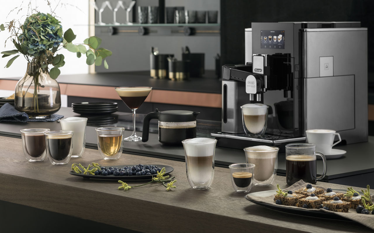 Der De’Longhi Maestosa Kaffeevollautomat verfügt über zwei voneinander unabhängige elektronische Mahlwerke mit innovativer Adaptive Grinding Technologie für optimale Mahlergebnisse. Die schlichte, hochglanzpolierte Front aus Glas wird an den Seiten von wellenförmig gestanztem Edelstahl umrahmt und verleiht der Maschine ihren edlen Look. Mit dem extra-großen 5-Zoll Full Touch TFT-Farbdisplay können bis zu 20 Kaffeevariationen zubereitet werden.