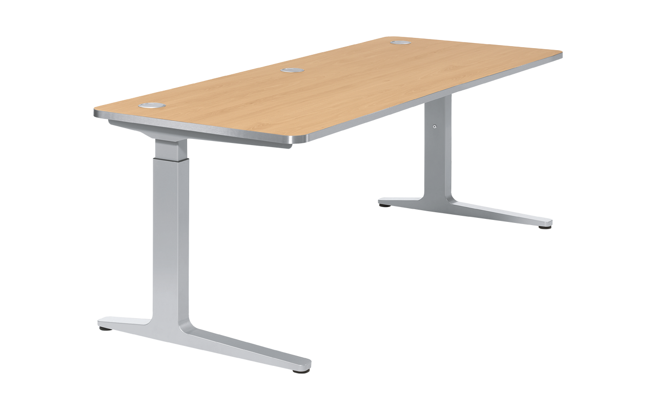 Der iModul Schreibtisch von Delta-V gewinnt in den Kategorien hohe Qualität, Design, Bedienkomfort, Funktionalität und Ergonomie. Die hohe Qualität zeigt sich nicht nur in der starken Tischplatte mit den alubeschichteten Umleimern, sondern auch in den beiden synchron arbeitenden Motoren zur Höhenverstellung und dem Kabelschlauch auch festem Nylongeflecht. Im Design ist der iModul auf das Wesentliche reduziert und wird durch die Tischplatte mit den abgesetzten chromfarbenen Elementen und Beinen bestimmt. Zur Entlastung des Rückens kann der iModul in der Höhe verstellt werden, so dass auch Arbeiten im Stehen möglich wird. Darüber hinaus ist das C-Fuß Stahlgestell ohne Traverse gefertigt und sichert so die Beinfreiheit in jeder Arbeitsposition. Zubehör wie die Strombox mit Schuko-Stecker, USB- und LAN-Anschlüsse, CPU- Halter und das Anbau-Kabelmanagement erweitern die Funktionalität und tragen gleichzeitig zum Bedienkomfort bei.