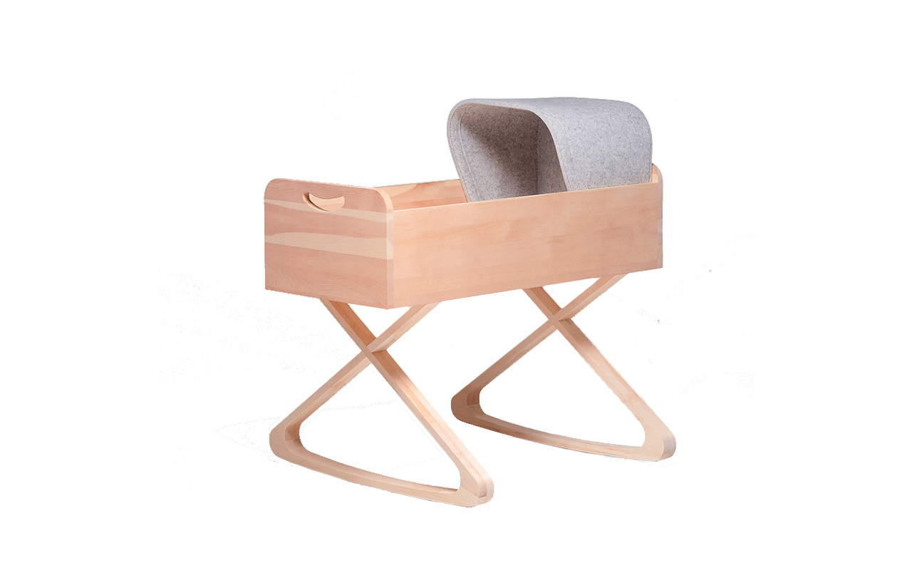 Die Babywiege Jolle von „Die Koje“ punktet mit hoher Qualität, Design und Ökologie. Sie ist aus 100 Prozent österreichischem Zirbenholz handgefertigt und kommt komplett ohne Metall und Kunststoff aus. Die Matratze besteht aus Kokosmatte, Schafwolle und einem Leinenüberzug. Schon auf den ersten Blick unterscheidet sich Jolle von anderen Babywiegen: die x-förmig geformten Kufen und die Reduzierung auf die wesentlichen Elemente geben ein gradliniges Bild, bei dem aber auch der Wohlfühleffekt nicht zu kurz kommt. Das aus Filz handgenähte Dach symbolisiert den Schutz des Babys in der Wiege, die Kufen ermöglichen das Wiegen des Babys. Auf der ökologischen Seite zeichnet sich die Babywiege durch das Cradle-to-Cradle Prinzip aus. Das bedeutet, das von der Auswahl der verwendeten Rohstoffe über den Produktionsprozess bis hin zur Frage der Wiederverwendung oder Entsorgung konsequent ökologische Aspekte berücksichtigt wurden und so ein nachhaltiges Produkt entstanden ist.