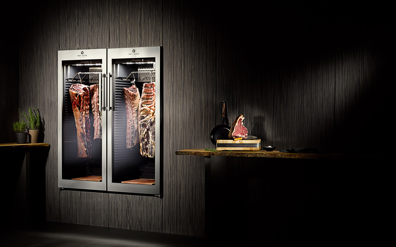 Trocken gereiftes Fleisch bietet einen ganze besonderen Geschmack, der mit dem Dry Ager DX 1000 auch zu Hause genossen werden kann. Eine ausgefeilte Steuerung sorgt für das richtige Klima und garantiert gesundes, hochwertiges Fleisch.