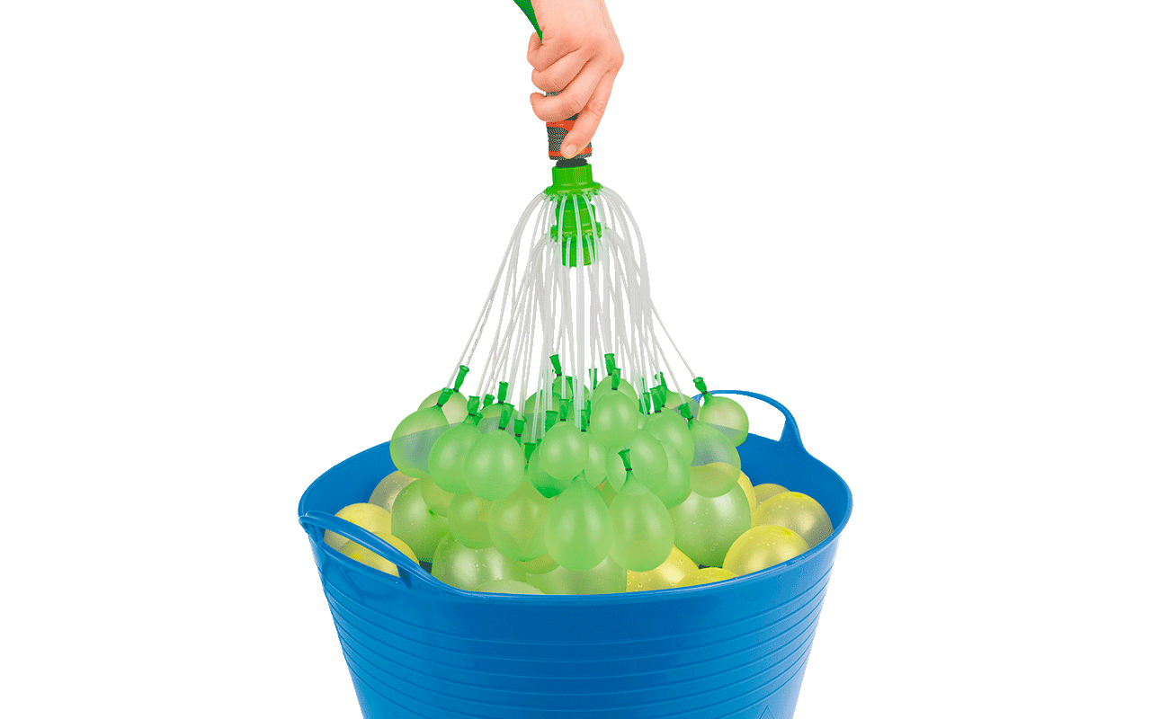 Mit der Wasserballonbabrik von EASYmaxx vervielfacht sich der Sommerspaß um das 88-fache. Mit Hilfe der Wasserbalonfabrik lassen sich gleichzeitig bis zu 88 Wasserbalons befüllen. Der Clou an der ganzen Sache ist, sind die Ballons komplett mit Wasser befüllt, rutschen Sie durch ihr Eigengewicht automatisch vom Füllschlauch ab und verschließen sich dank der Verschlussringe selbstständig. So bleibt das lästige Zuknoten der Ballons erspart. Da die Wasserbalonfabrik aus 4 einzelnen Aufsätzen mit je 22 Füllschläuchen besteht können auch je nach Belieben auch weniger Ballons befüllt werden.