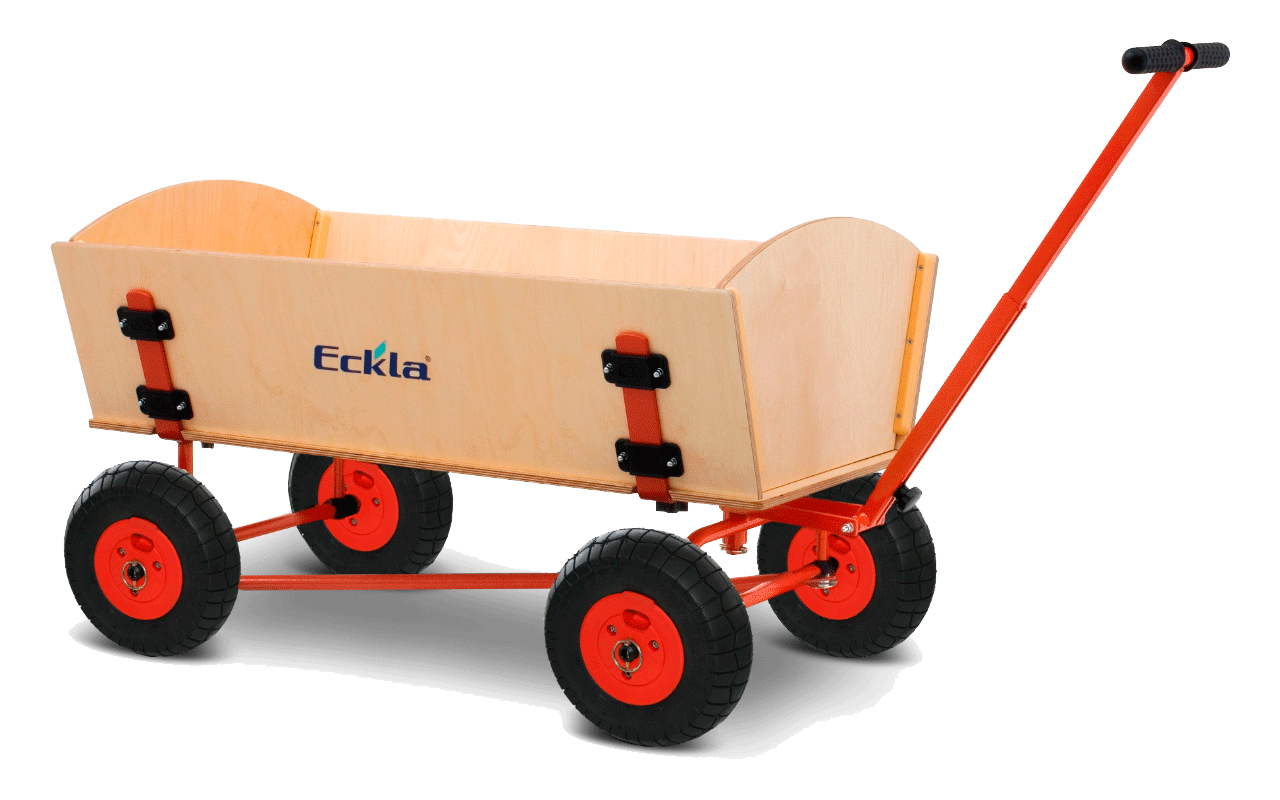 Der Bollerwagen Ecklatrak-Fun von Eckla ist ein innovatives Produkt, das sich außerdem durch seine hohe Qualität, den Bedienkomfort und die Funktionalität auszeichnet. Der in Deutschland gefertigte Holzwagen verfügt über eine zusätzliche Hinterachslenkung für mehr Fahrspaß. Die Deichsel ist ausziehbar und kann so schnell an die Körpergröße der ziehenden Person angepasst werden. Damit der Bollerwagen nicht nur von zuhause aus genutzt werden kann, lässt er sich komplett ohne Werkzeug zerlegen. Damit kann er schnell ins Auto geladen werden und verbraucht zum Wiederaufbau keinen zusätzlichen Platz für das Werkzeug – perfekt für Ausflüge und Urlaub.