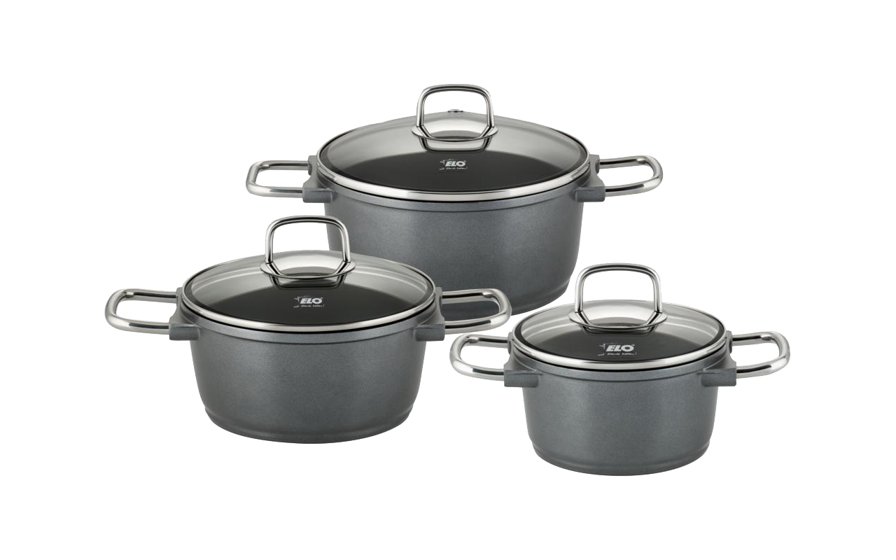 Das Elo Smart Solution Kochtopfset verfügt über hohe Qualität und Funktionalität. Im Inneren aus Teflon, Außen aus hochwertigem Silikon gefertigt und mit einem Glasdeckel versehen, garantiert das Set eine lange Lebensdauer. Auf dem Topfboden befinden sich zwei Ringe, mit denen sich Öl für fettsparendes Kochen dosieren lässt. Der kleinere Ring entspricht dem Volumen eines Teelöffels, in den größeren Ring passt ein Esslöffel.