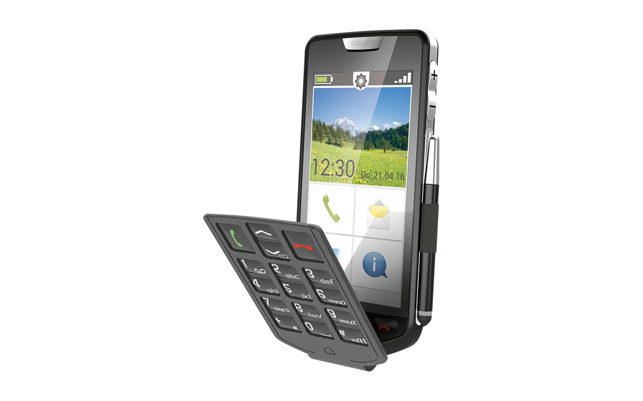 So praktisch Smartphones auch sind, manchmal ist die Bedienung ein Graus, spätestens wenn das „Präzisionswerkzeug“ Finger winzige Schaltflächen bedienen soll. Vor allem für die Generation 55+ wurde das emporia emporiaSMART entwickelt, das gerade dieser, in der Smartphoneszene noch unterrepräsentierten Gruppe den Schritt zum Smartphone und damit in die Neuzeit der mobilen Kommunikation ermöglichen soll. Äußerliche Hauptmerkmale dabei sind ein Stylus, mit dem man die kleinen Flächen besser trifft, und ein Hardcover mit Tastaturfunktion. Damit kombiniert emporia klassische Telefonbedienung und die moderne Touchbedienung von Smartphones. Darüber hinaus wurde das Startmenü des emporiaSMART vereinfacht und logisch aufgebaut, so dass es sich intuitiv erschließt. Der große Akku mit 2.600 mAh Kapazität kann in einer speziellen Ladestation mit neuer Energie versorgt werden.