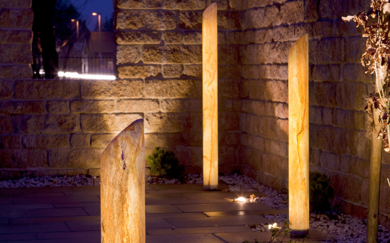Ein ganz besonderes Licht entsteht durch die etwa zehn Zentimeter schlanke Epstein Säule Sahara, denn in ihr leuchten LED-Leuchtmittel durch transluzenten Sandstein hindurch. Neben der hier vorgestellten Version in 140 gibt es noch fünf andere Baulängen.