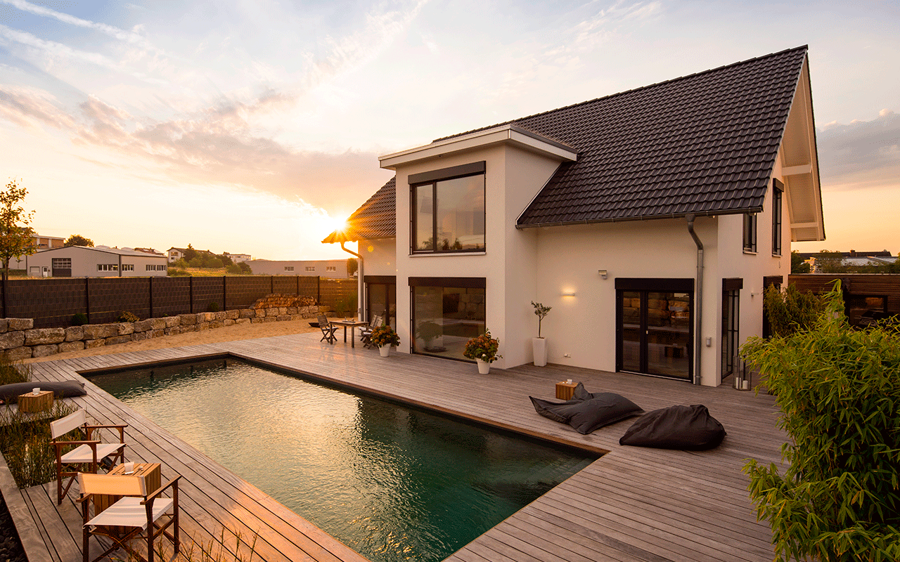Das Kundenhaus VIO von FingerHaus überzeugt mit seiner hohen Qualität und der Funktionalität ebenso wie durch Design und die Berücksichtigung ökologischer Aspekte. Sein Design stellt die Verbindung zwischen einem Einfamilienhaus mit Satteldach und einem 3-Flachdach Giebel her. Die dezente Farbgebung in Weiß und Grau wirkt leicht und elegant. Große Fensterflächen unterstützen diesen Eindruck und schaffen Transparenz. Von Innen ist das Kundenhaus VIO als Familienhaus konzipiert, in dem Funktions-, Gemeinschafts- und Rückzugsräume eine harmonische Verbindung eingehen. Die Qualität belegt FingerHaus durch die Verwendung zertifizierter Baumaterialien, die Mitgliedschaft in unterschiedlichen Organisationen sowie verschiedene Gütesiegel. Auch die Ökologie wird mit berücksichtigt: Das Kundenhaus VIO erfüllt der KfW 55 Standard.