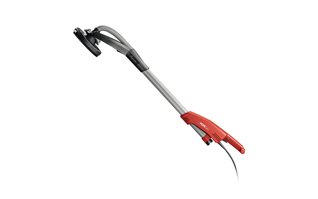 Giraffe heißt der neue Winkelschleifer von FLEX, mit der auch in hohen Räumen ermüdungsfrei gearbeitet werden kann. Die GE 5 R ist mit einem besonders flexiblen Rundschleiferkopf mit Randsegment ausgestattet. Das ermöglicht ein nahezu staubfreies Schleifen von Flächen und Übergängen (Kanten) an Wand und Decke in einem Arbeitsgang. Das Gerät ist sehr flexibel durch das werkzeuglos montierbare Verlängerungsmodul: Es lässt sich einfach bedienen und erweitert die Arbeitshöhe um 50 cm für große Raumhöhen. Die GE 5 und GE 5 R sind für den professionellen Einsatz konzipiert worden. Alle Komponenten wurden daher dementsprechend auf eine besonders lange Lebensdauer ausgelegt. Getriebe- und Gehäuseteile wurden mit Hilfe von FEM Beanspruchungssimulationen hinsichtlich Festigkeit und Gewicht optimiert. Die Kraftübertragung erfolgt zuverlässig und flexibel durch die bewegliche Antriebswelle. Die seit Jahrzehnten bewährte „FLEX Technik“ reduziert das Gewicht am Kopf der Giraffe auf ein Minimum. Das erleichtert die Handhabung.